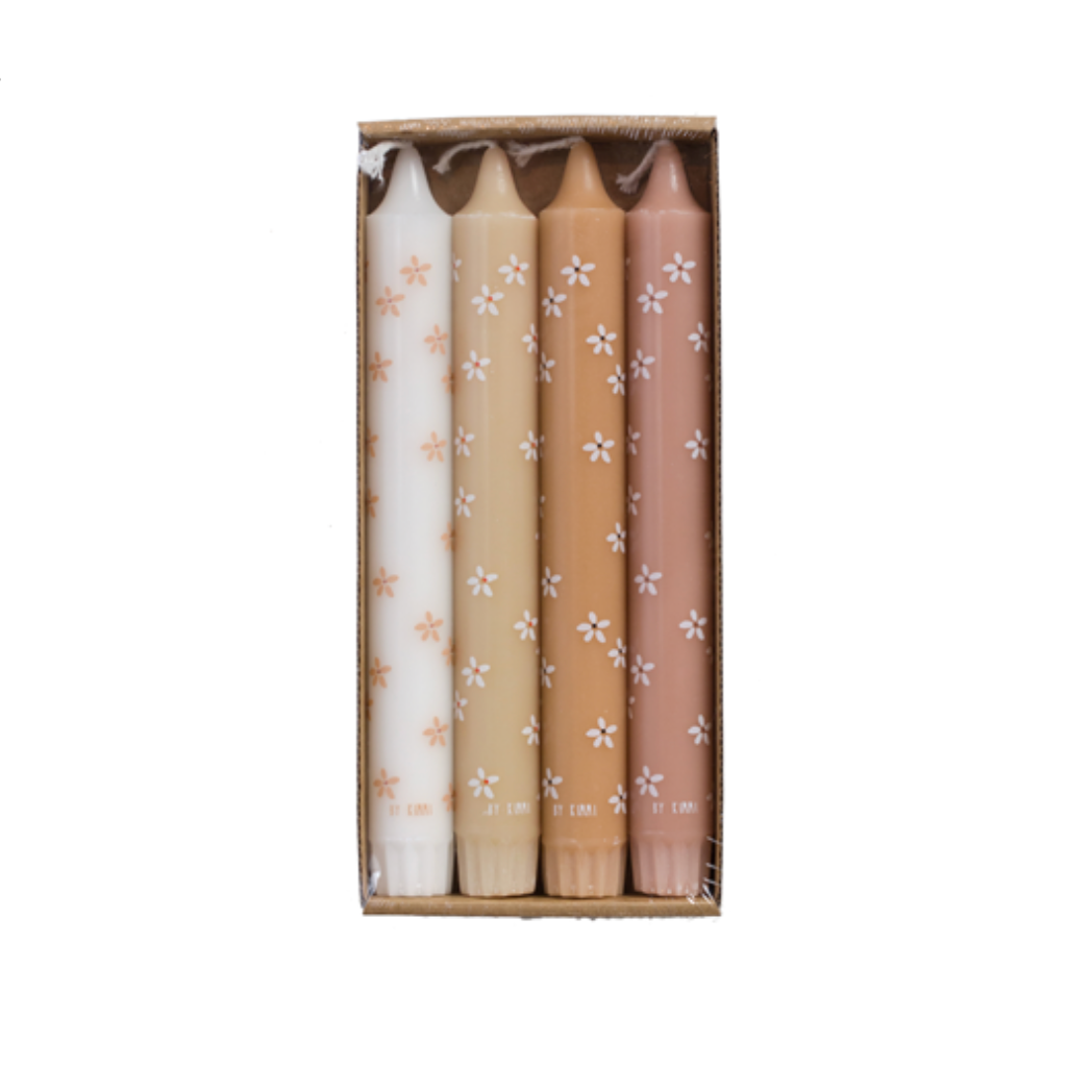 Rustik lys | Dinerkaarsen | Flowers spring | Set van 4 stuks