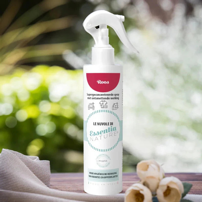 De geur van Roos is zoet, rijk en tijdloos. Met deze geconcentreerde spray haal je de geur van een bloeiende rozentuin in huis. Frisse en verfijnde rozen zorgen voor een zachte en romantische sfeer, gecombineerd met een krachtig reinigend resultaat.
