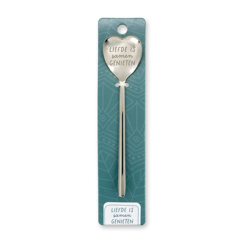 Dit hartvormige lepeltje met de tekst 'Liefde is' is het perfecte cadeau om liefde te vieren in al haar vormen. Een romantisch en betekenisvol cadeau dat elke koffiepauze of theemoment extra speciaal maakt.