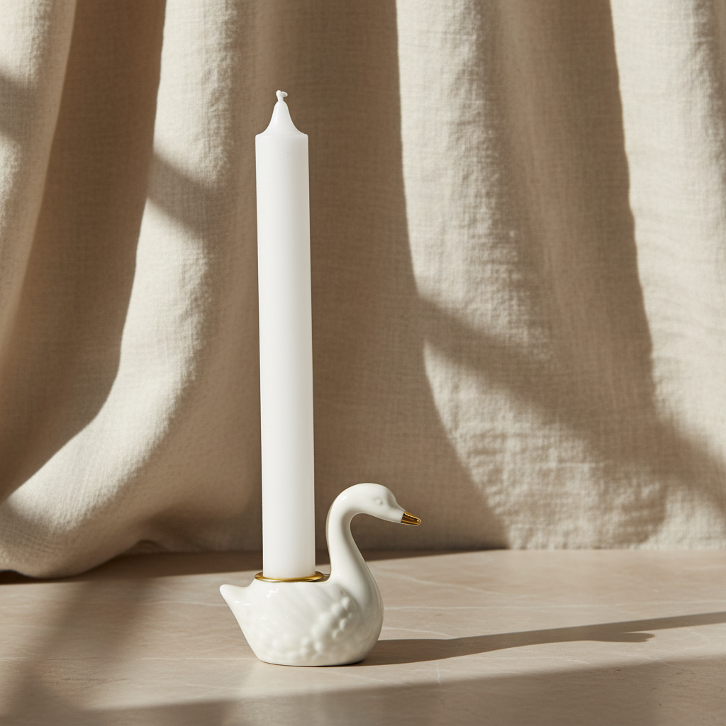 Kandelaar | Keramiek | Zwaan | Wit-Goud