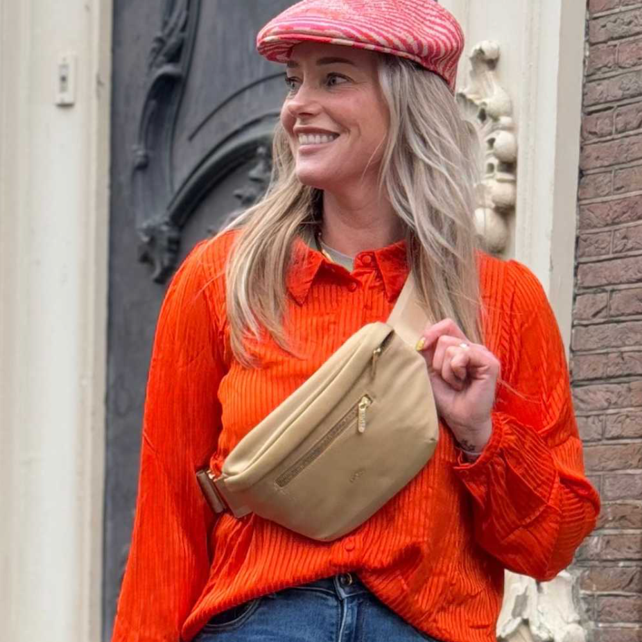 Met de Jessy crossbody heuptas in beige voeg je een vleugje ingetogen luxe toe aan je look. Stijlvol, praktisch en altijd in balans – deze tas mag niet ontbreken in jouw garderobe!