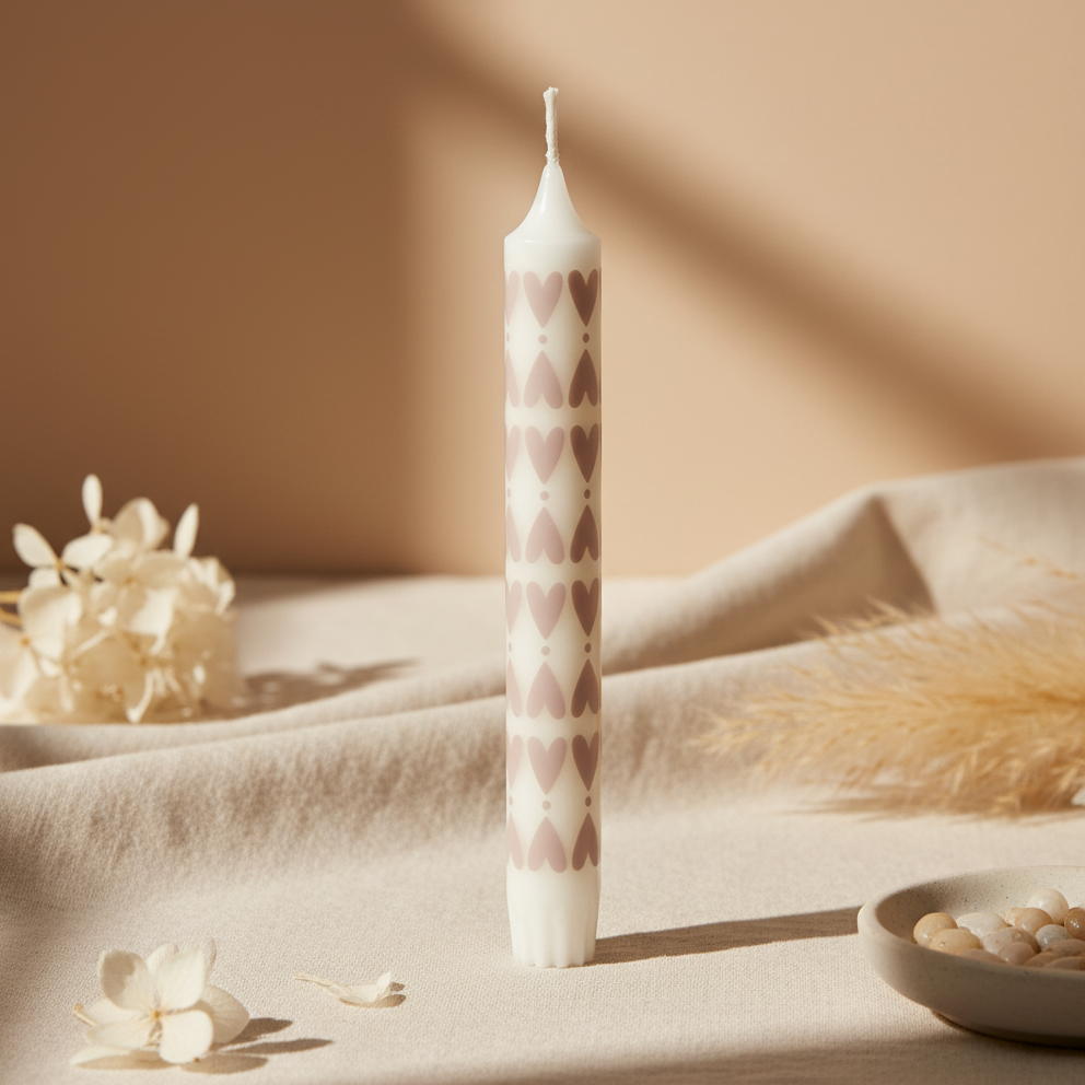 Deze te leuke diner kaars is gemaakt van stearine, een natuurlijk materiaal, waardoor deze kaarsen eco-friendly zijn. Hij is versierd met de handgetekende By Kimmi printjes, daardoor ontpopt deze dinerkaars zich ineens tot een ware eyecatcher. Licht uit, kaars aan!