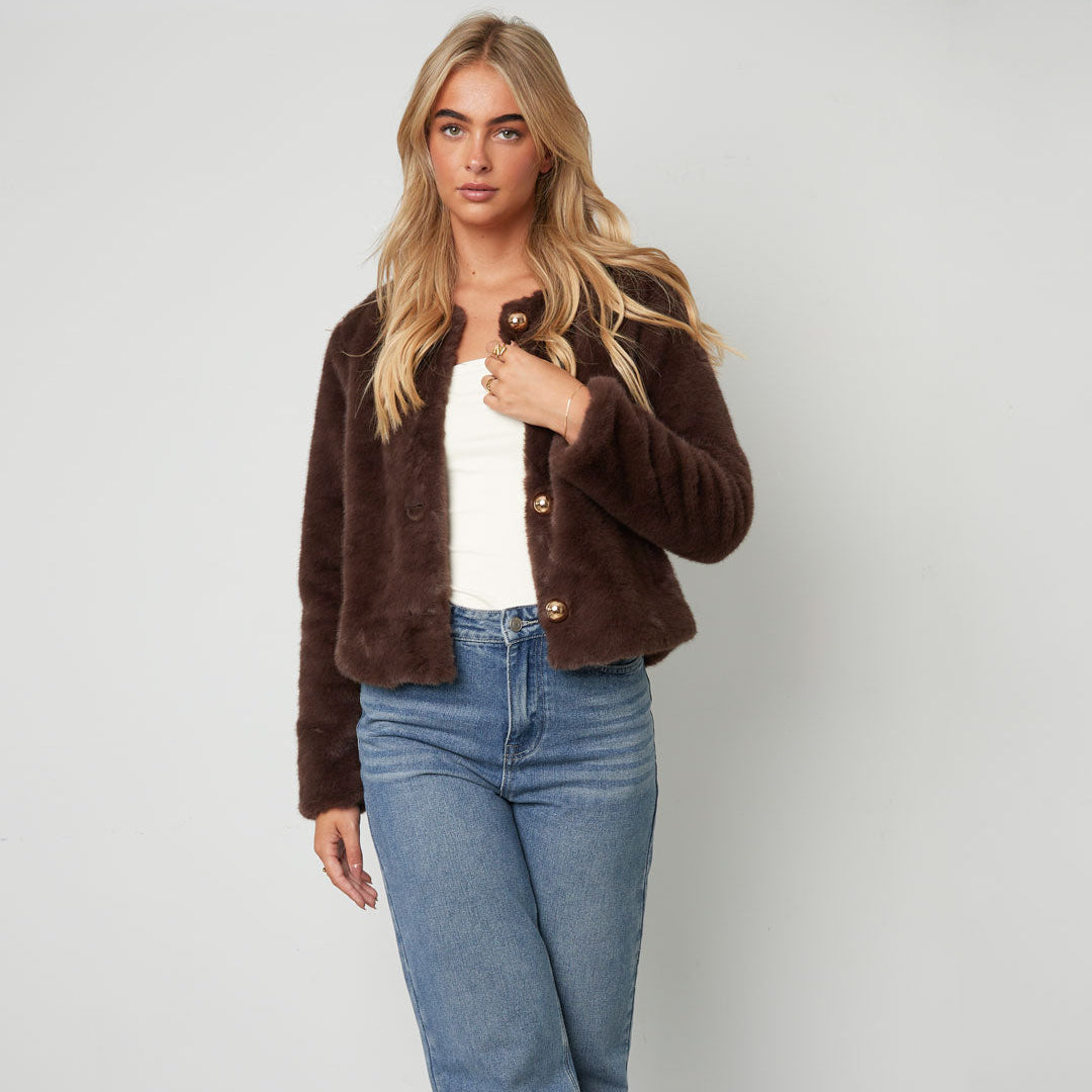 Stel je voor: een frisse herfstmorgen, je trekt deze zachte jas aan en voelt direct die luxueuze warmte. Of een koele avond uit, waarbij de elegante bruine kleur je outfit compleet maakt. Dit is de jas waar je elke dag naar grijpt, omdat hij gewoon perfect aanvoelt.