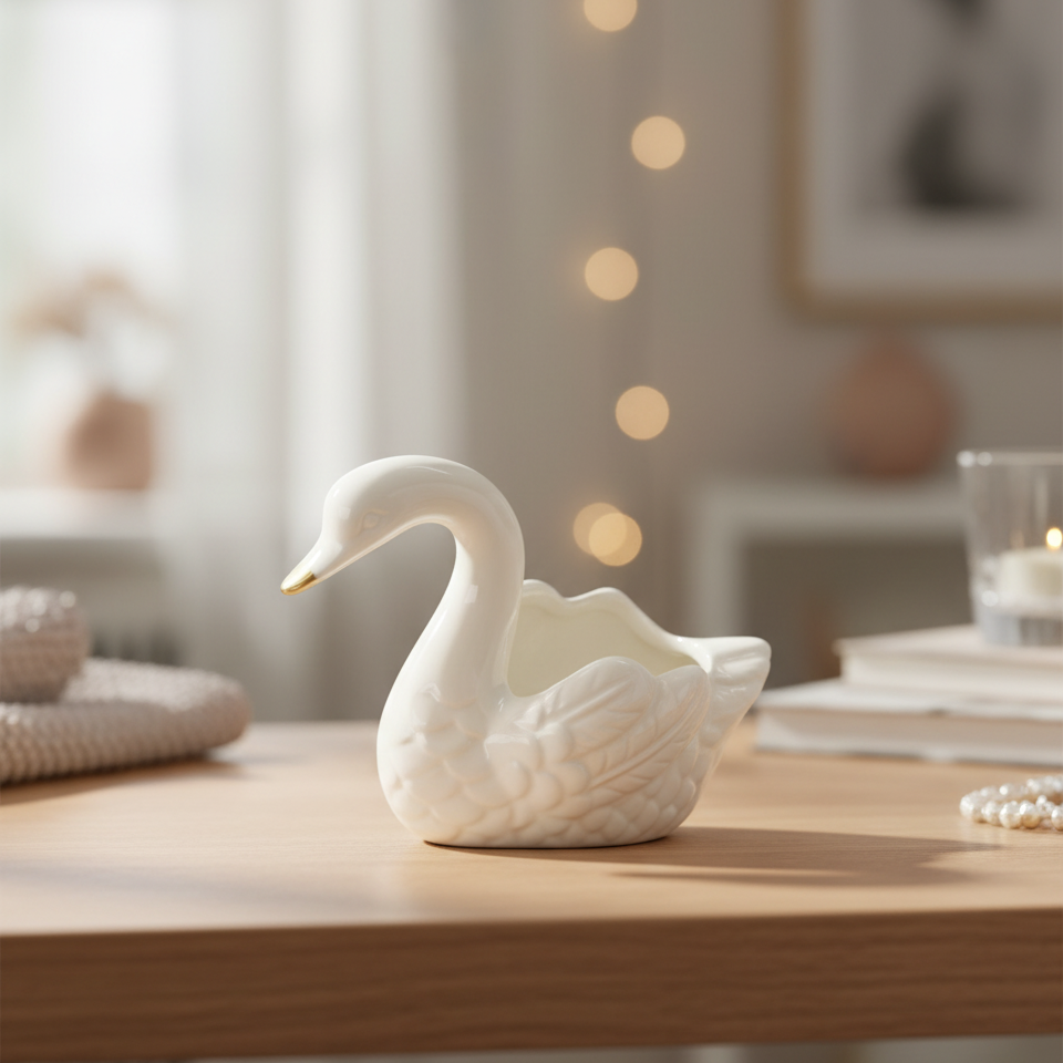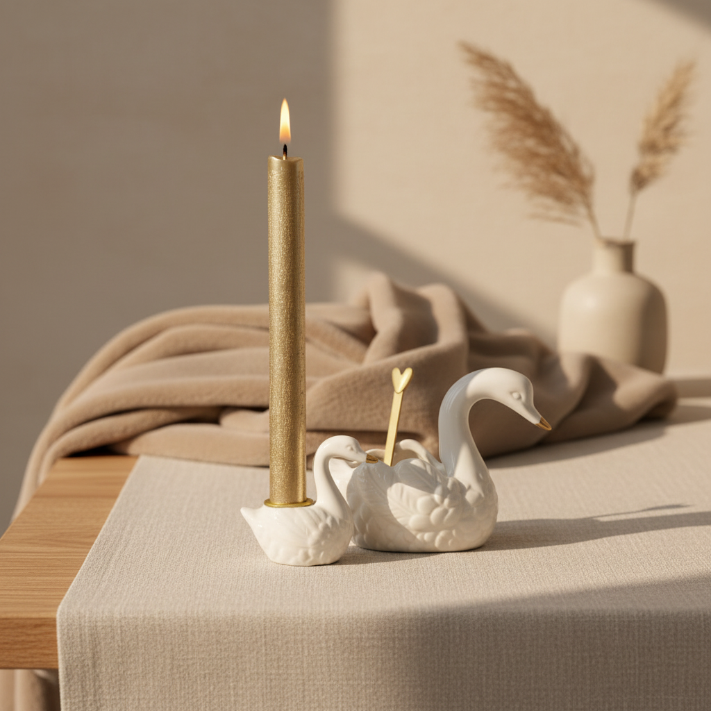 Waxinelichthouder | Keramiek | Zwaan | Wit-Goud