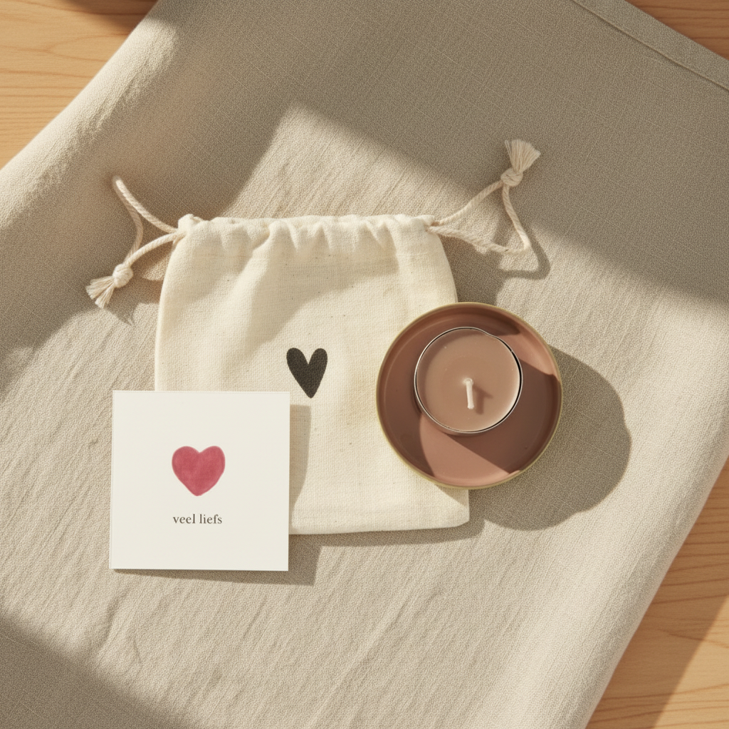 Waxinelichthouder | Metaal in zakje | Veel liefs